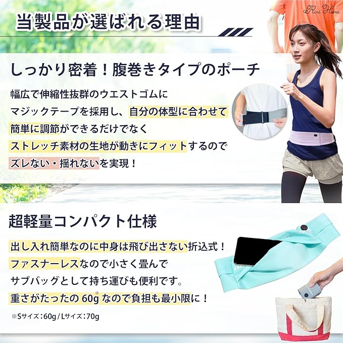 ♀️ 腹巻きタイプのものだと走っていると 荷物が飛び出してくる恐れがあります この商品は腹巻きタイプのように体に密着しますが上部が蓋のようになっている作りなので 荷物が飛 び出さず、後部がマジックテープになっているのでサイズの微調整や体調によって緩めたり締めたりが簡単にできます