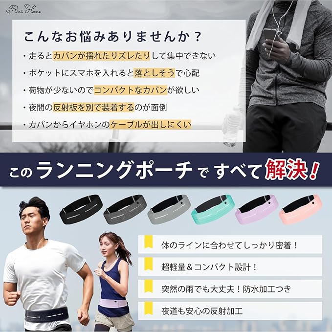 ランニング ポーチ【驚くほど揺れない、軽い】 ウエストポーチ ジョギング 超軽量 防水 揺れないRiriHome(ダークグレー, S)