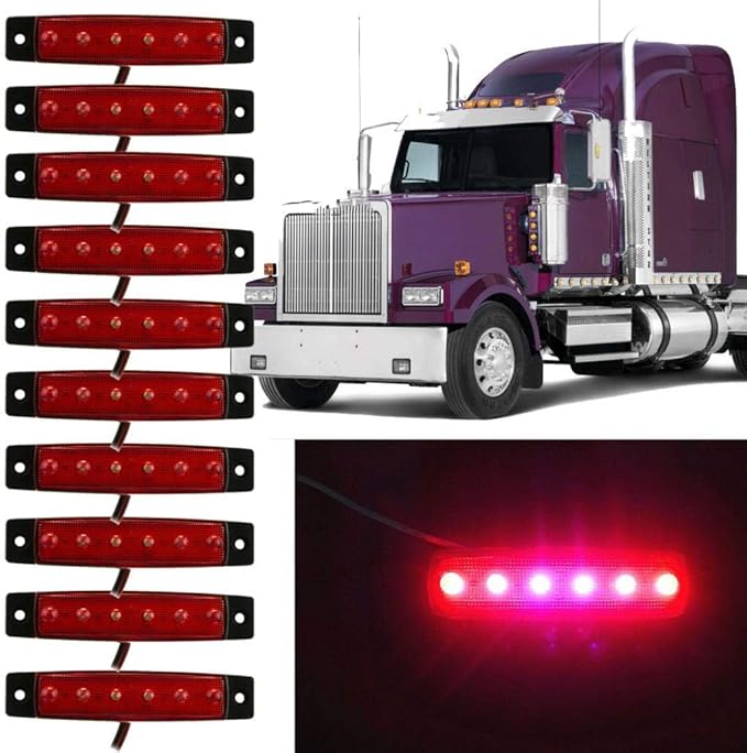 トラックサイドマーカーインジケーター,10個のLEDトラックサイドライト6SMDLEDサイドマーカーインジケーターライトフロントリアサイドライトポジションランプ12V-24V (赤)