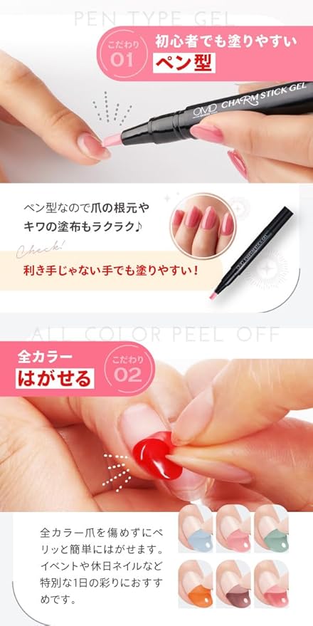 はがせるジェルネイル カラージェル OMD チャームスティックジェル約2.5g #27 チェリードロップ 剥がせる ピールオフ オールインワン ベース ソークオフ ペディキュア 国産 日本製 セルフ サロン アート