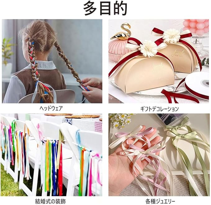 【用途】初心者の方でも簡単に使え、オリジナルで可愛らしいハンドメイド作品を作成できます。また、リボンを使ったヘアアクセサリーやバッグの飾り付けなどにも活用できます。