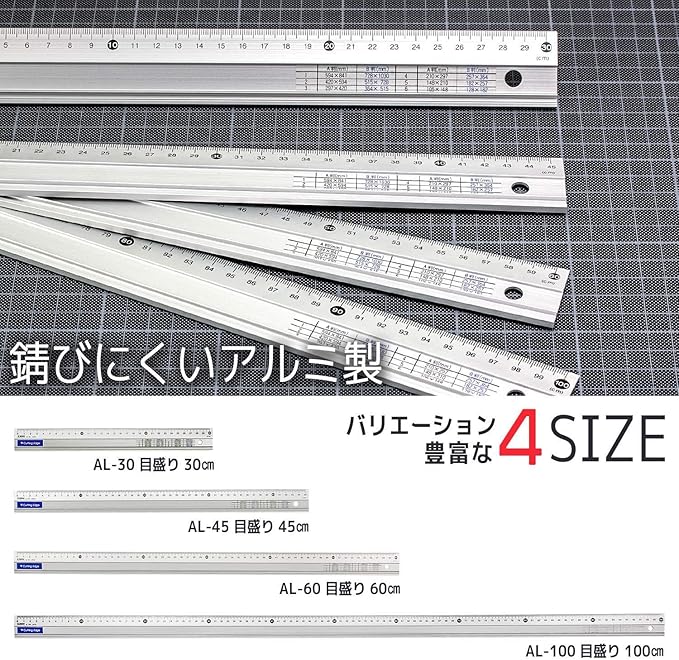 ライオン事務器 カッティング定規 45cm AL-45 アルミ