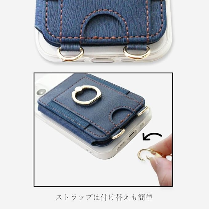 ストラップ装着リング:ショルダーストラップが付属しており、スマートフォンの持ち運びからファッションと安全性をさらに向上させていします。