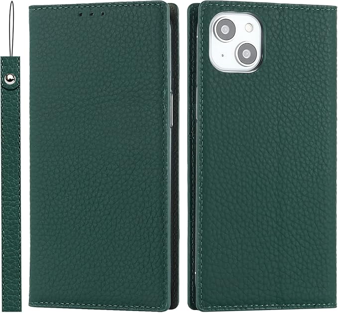 Eastwave アイフォン for iPhone 14 Plus ケース 本革 牛革 for iPhone 14 Plus ケース 手帳型 for iPhone14plus カバー 手帳 本革 柔らかい 本皮 スプラットホール付き スプラット同梱 内蔵マグネット-ダークグリーン