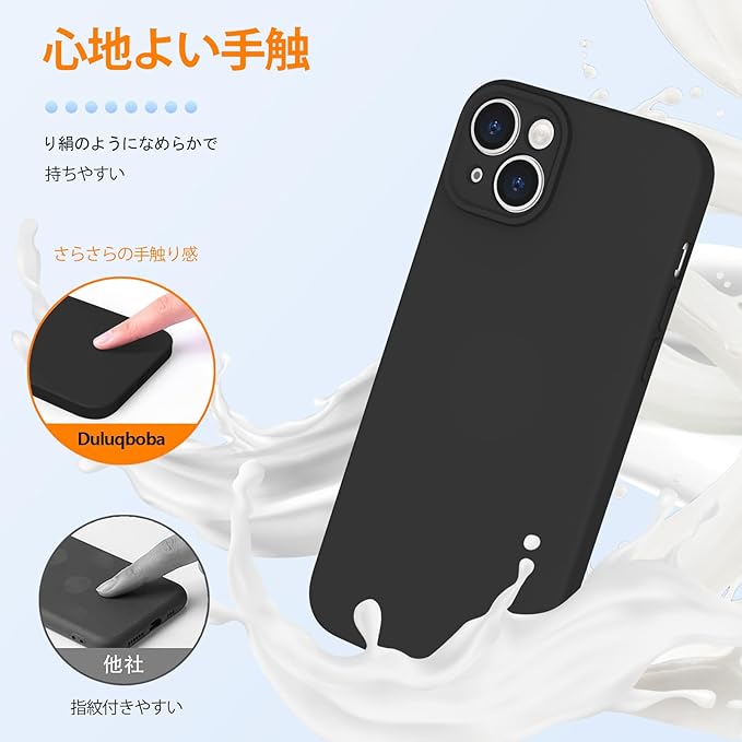 【製品仕様】iPhone 15 用ケースに対応なので、機種を間違いないようご注意下さい。【製品特徴】一体感良く、装着したままでワイヤレス充電に対応できます。【優れる設計】従来のプラスチック製品と比較してゴムに近い素材なので滑りにくく、誤って手から落ちる危険が少なくなりました。ケースの内側は精細なマイクロファイバーを使用し、触り心地がよく携帯電話の背面への擦り傷を防げます,放熱性にも優れています。【スリム設計】携帯電話の美しさを損なわないスリムなデザインながら、不意の落下や衝撃からしっかり保護します。装着感と耐久性備えて、変色変形しにくくなっています。シルクのように上品でマットな質感を持ちながら、傷に対しても強い。【レンズ・画面保護】縁が高く、カメラレンズや画面が直接床面にぶつかりにくい設計です。携帯電話を落とした時も、大切なレンズや画面を護ります。
