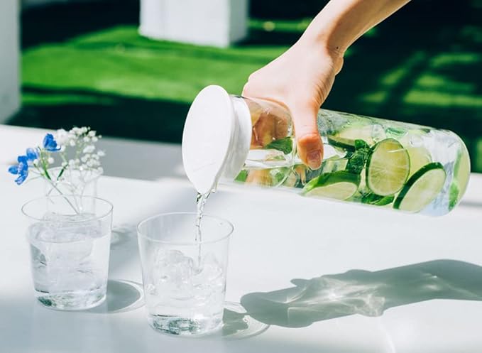 HARIO(ハリオ) 冷水筒 耐熱ガラス製 フリー ポット・ホールド 1000ml ホワイト 日本製 麦茶 ボトル お茶 冷蔵庫 6FP-10-W