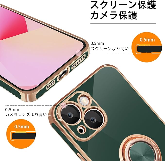 inxhey iPhone 13Mini ケース リング付き アイフォン 13Mini ケース 耐衝撃 スマホケース 携帯カバー 360 回転 リング スタンド機能 ストラップホール付き 車載ホルダー対応 TPU メッキ加工 カバー iphone 13Mini ケース 5.4インチ用 (グリーン)