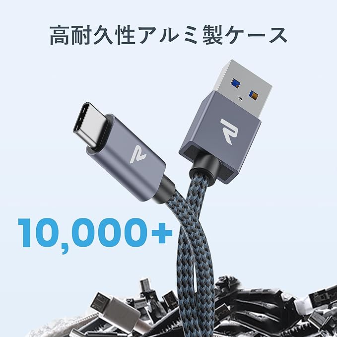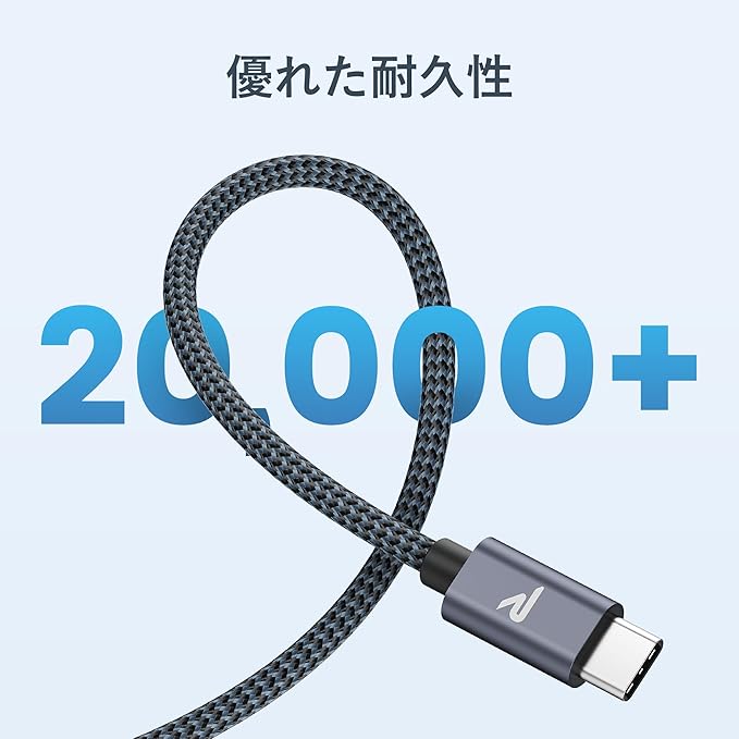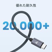 【耐久性と柔軟性を両立】ナイロンの二重編み込み素材を採用し、丈夫で信頼性の高いUSB Cケーブルを提供します。20,000回以上の曲折テストにたえて、頻繁な挿抜や長時間の使用にも耐えられます。