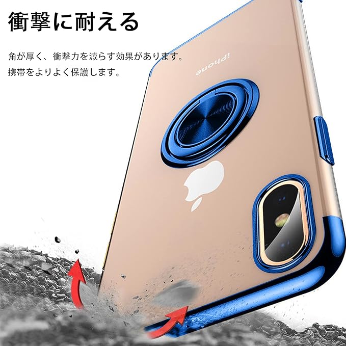 iPhone 13 Mini 用 ケース リング付き クリア 耐衝撃 スタンド機能 透明 TPU 車載ホルダー対応 落下防止 防塵 薄型 軽量 一体型 変形防止 全面保護カバー アイフォン用 ケース 青 W-YXZH-32-05