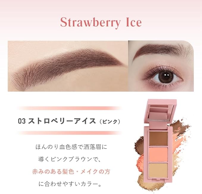 [ frunflynn フルンフリン ] マルチパーフェクター アイブロウ キット 「3色グラデーションの アイブロウ パウダー でふんわり眉と陰影のある鼻筋を演出」 眉パウダー [ 鏡・アイブロウブラシ・スクリューブラシ・ツイーザー付属] 眉ブラシ (03 ストロベリーアイス)