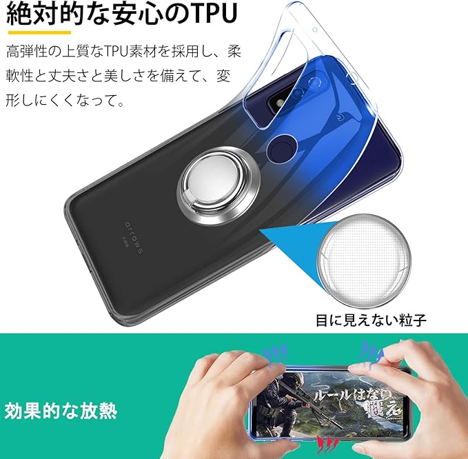 arrows We F-51B ケース リング 透明 tpu 薄型 軽量 FCG01 カバー シリコン グラデーション色 ケース 耐衝撃 指紋防止 車載ホルダー対応 防塵 一体型 人気 携帯カバー ブルーブラック