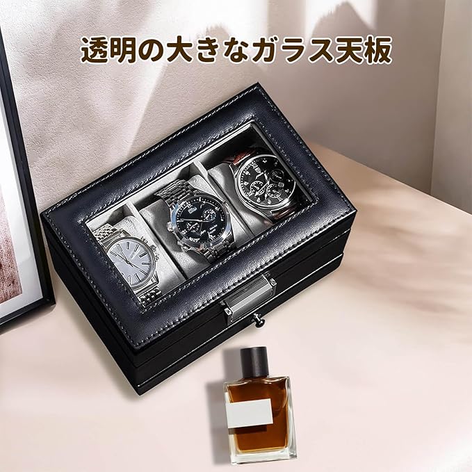 Mocamoro 腕時計ケース 3本用 2段式 ウオッチボックス 男性 時計コレクション ガラス天板 ディスプレイ