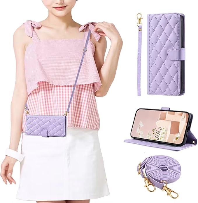 AQUOS sense9 ケース 手帳型 アクオスセンス9 スマホケース 手帳型 ストラップ付 エレガントで ある aquos sense9 アクオス センス9 ケース 【Mldjomid】 スマホケース PUレザー スタンド機能 カード収納 ストラップ付き チェック柄 刺繍 AQUOS sense9 財布型 ケース 財布型 (紫