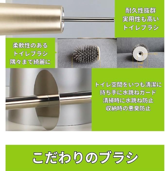 トイレブラシ トイレ用品 ステンレス おしゃれ トイレ掃除 錆止め コンパクト スリム収納 ブラシホルダー ケース付き ゴールド