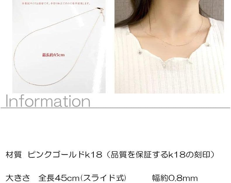 [アトラス] Atrus 18金 ネックレス チェーンのみ レディース ピンクゴールドk18 ピンスルー アズキチェーン ミラーカット スライド 45cm 地金 sn
