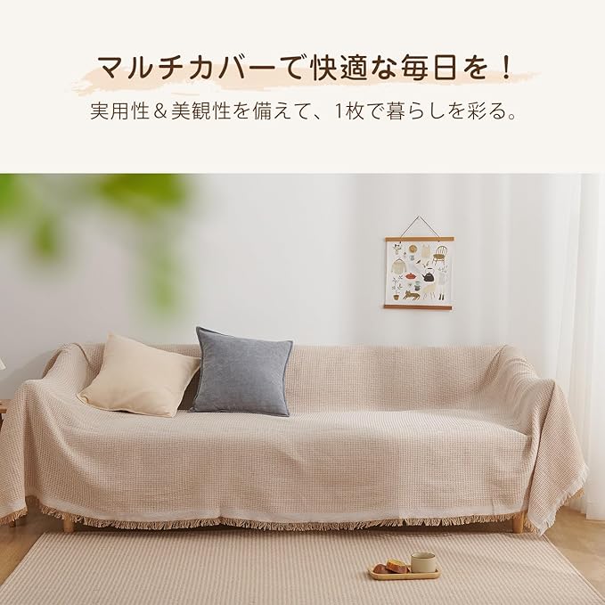 ・【幅広い使用範囲】かけるだけでソファー全体をカバーでき、防塵やキズ防止などの機能があり、ソファーをしかっりと保護できます。多機能で、ベッドカバー、テーブルクロス、冷房毛布、ひざ掛け、防塵カーペット、キャンプカーペット、旅行毛布などとして一年中活躍できます。