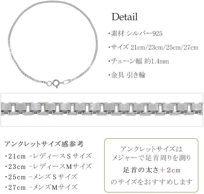 [新宿銀の蔵] ベネチアンチェーン シルバー 925 アンクレット 長さ21~27cm (21~27cm) シンプル 足首 銀 金 ゴールド K24 24金 メンズ レディース