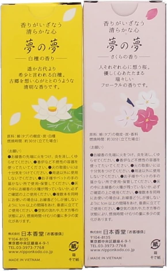 ●詰合せ内容…夢の夢白檀(内容量約40g)、夢の夢さくら(内容量約40g)、火がつきやすい墓参り用お線香白檀4把入、色芯ろーそく(内容量約50g)