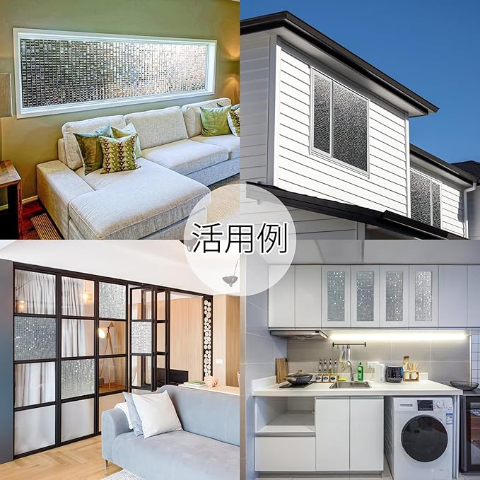KTJ 窓用フィルム ガラスフィルム ガラスシート 目隠しシート めかくし 遮光 断熱 UVカット 飛散防止 装飾シート DIY 3D立体表面 インテリア ベランダ 浴室 プライバシー保護 省エネ (44.5x200cm, 小モザイク)