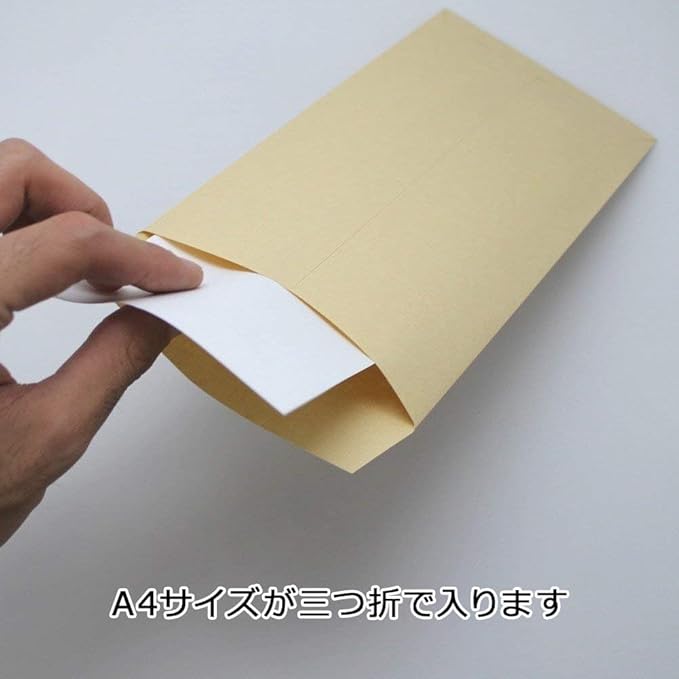 A4サイズ横3つ折りが入る定形郵便最大のクラフト封筒です。