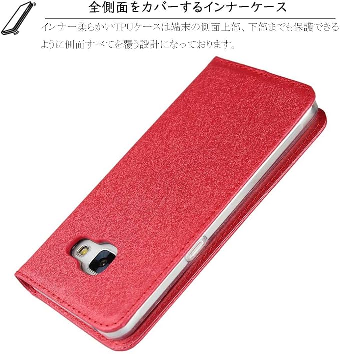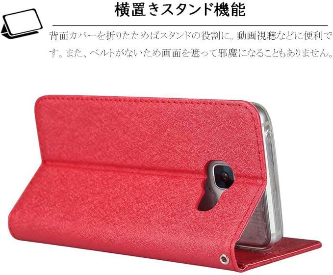 Elick Galaxy Feel SC-04J 用 ケース カバー 薄型 高級PUレザー 手帳型 マグネット式 ベルトなし ストラップ付き カード収納 ギャラクシー フィールス SC-04J docomo スマホケース レッド
