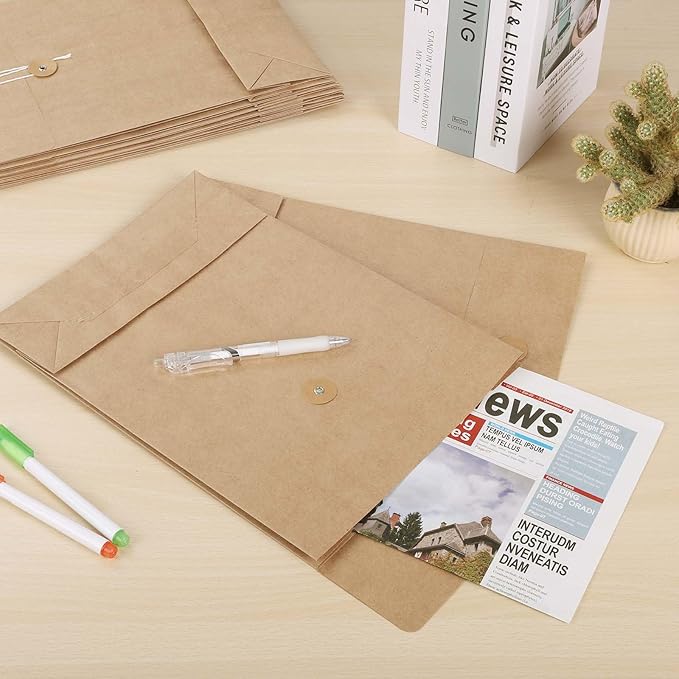 Belinlen【12個入り】a4 封筒 ファイル クラフト紙 紐付き封筒 大容量 8cmマチ付き 区分けラベルシール付き 資料保管 事務用品 ファイル