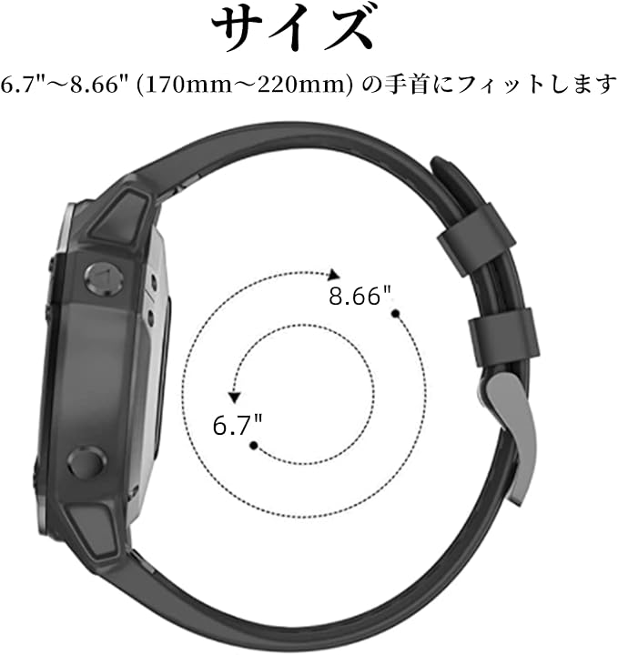 簡単取付、両端にステンレス製の金属製のクイックリリースバックルがが付属しており、ガーミンの時計を正確かつ確実にロックします。