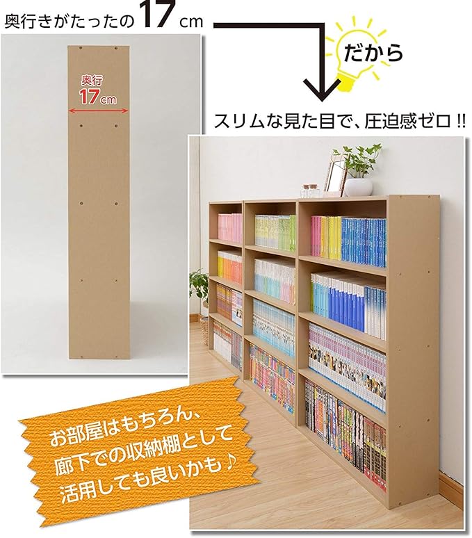 ●文庫本やコミック収納に最適なラック●奥行スリムで省スペースデザイン●組立品(組立時間:約20-30分)