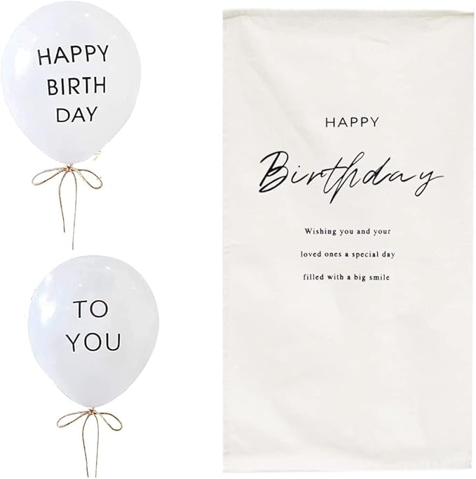 限定商品 バースデー タペストリー HAPPY BIRTHDAY 風船付き バースデータペストリー バルーン 誕生日飾り付けセット シンプル モノトー 100日 ハーフバースデー