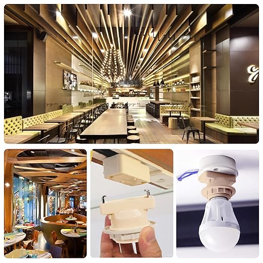 1.引掛けシーリングに取り付け可能なE26口金のソケットです、包装:6個入り、色:ベージュ、サイズ(CM):高さ4.4 幅2.4 全長5.2、材質:尿素粉末+赤銅、本体重量:40g/1個。
