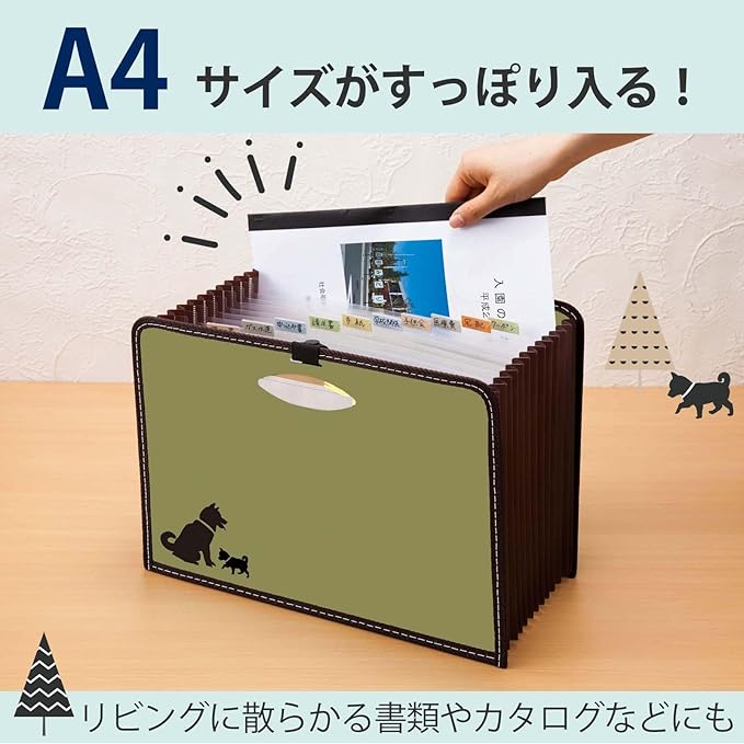 コモライフ 大容量 ドキュメントボックス (わんこ柄) 13ポケット A4 蛇腹 ファイル ボックス 書類 収納 整理