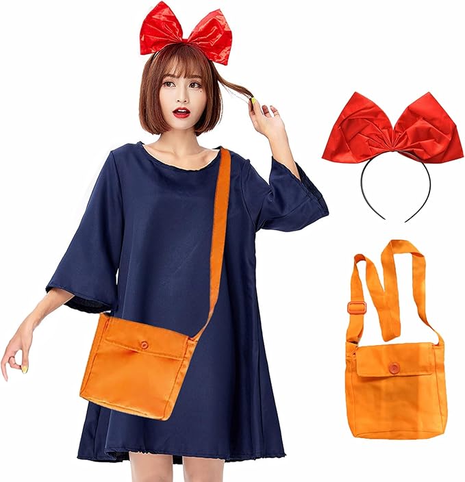 [Maazusa] 魔女 コスプレ キキ風 ワンピース レデイーズ コスプレ 変装 かわいい 宅急便 仮装 コスチューム アニメ ドレス 3点セット 萌え 可愛い レデイーズ 魔法使い クリスマス イベント 学園祭 変装パーティー 演出服 舞台劇