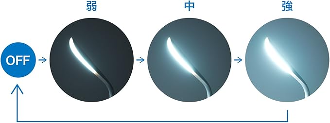 LEDの明るさは、消灯→弱→中→強と調節が可能。用途や環境に応じて選択できます。