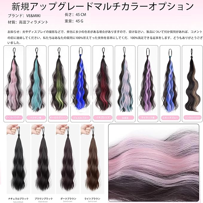 【設置が簡単】使い方もとても簡単で、数秒で髪型を変えることができます。輪ゴムが髪を固定し、安定感も抜群!ポニーテールにもツインテールにも、軽やかに大変身!私たちの洗練された髪が伸びて、数秒であなたを助けることができます。いろいろな髪型をします。髪を染めず、自毛を傷つけずに実現できる美しさ。ポニーテールのウィッグを編むのがおすすめです。