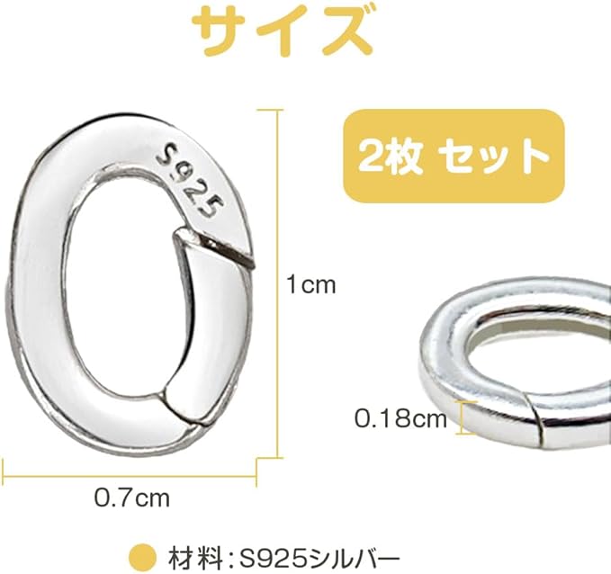 ESJNNK スターリングシルバー 925 銀 2枚セット ネックレス パーツ 輪っか ネックレス コネクター アクセサリー キーホルダー リング リング カラビナ ショートナー エンハンサー DIY