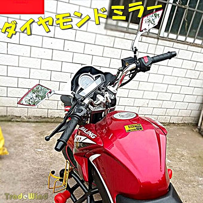TradeWind バイクミラー ダイヤモンドミラー オートバイ バックミラー リアミラー 正ネジ逆ネジ 8mm 10mm(ブラック)
