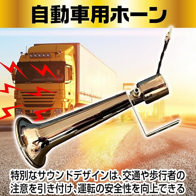 【商品】このクラクションは、トラック.ダンプカー等さまざまな車両に適しており、12.0Vおよび24Vの車種に雨や雪でも対応できる防水設計。