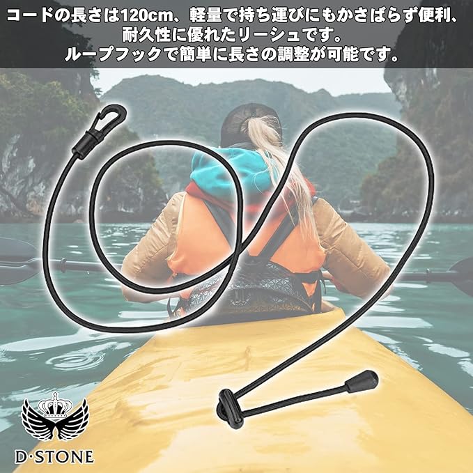 D・STONE カヌーパドルリーシュ パドル リーシュ コード カヤック カヌー 用 安全 ロッド 固定 調整 可能 2個 セット