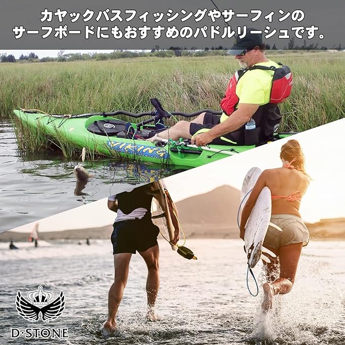 カヤックバスフィッシングやサーフィンのサーフボードにもおすすめのパドルリーシュです。