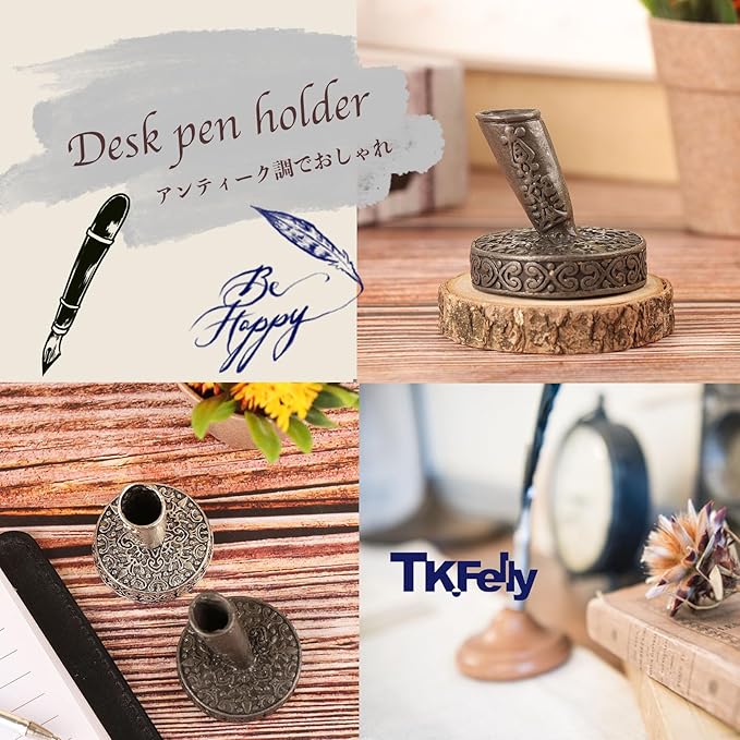 TK.Felly ペン立て ペンスタンド アンティーク レトロ 金属 万年筆 受付 ヨーロッパ調 古銅
