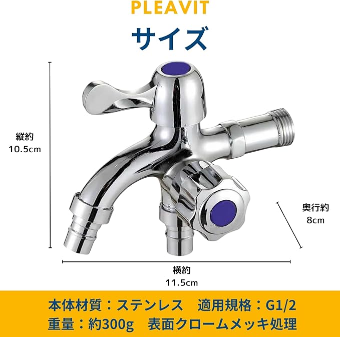 PLEAVIT 水道 蛇口 分岐 二股 二口 双口 ワンタッチ 洗濯機 水栓 屋外 切り替え 継手 (青)