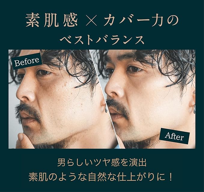 【ナチュラルさ カバー力のベストバランスを追求】 スキンケアの延長のような使い心地で、素肌を最大限活かす処方発想。自然さと、肌補正力のベストバランスを追求しました。青ひげ・毛穴・シミなどメンズ特有の肌トラブルをカバー(メーキャップ効果による)しながらも、メイクバレしないBBクリームです。