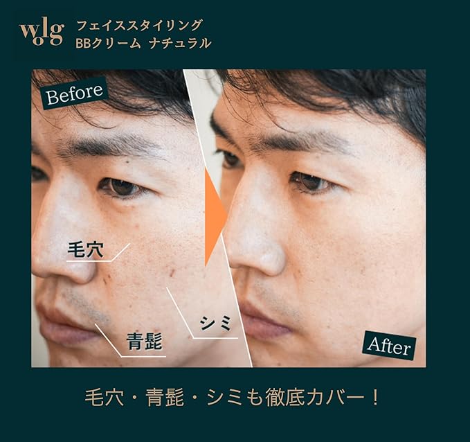 wolg(ウォルグ)【メンズ 日焼け止め BBクリーム】 初心者 青髭 クマ 毛穴 隠し 脂性肌 乾燥肌 敏感肌 バレない 自然な仕上がり 洗顔で落ちる 20代 30代