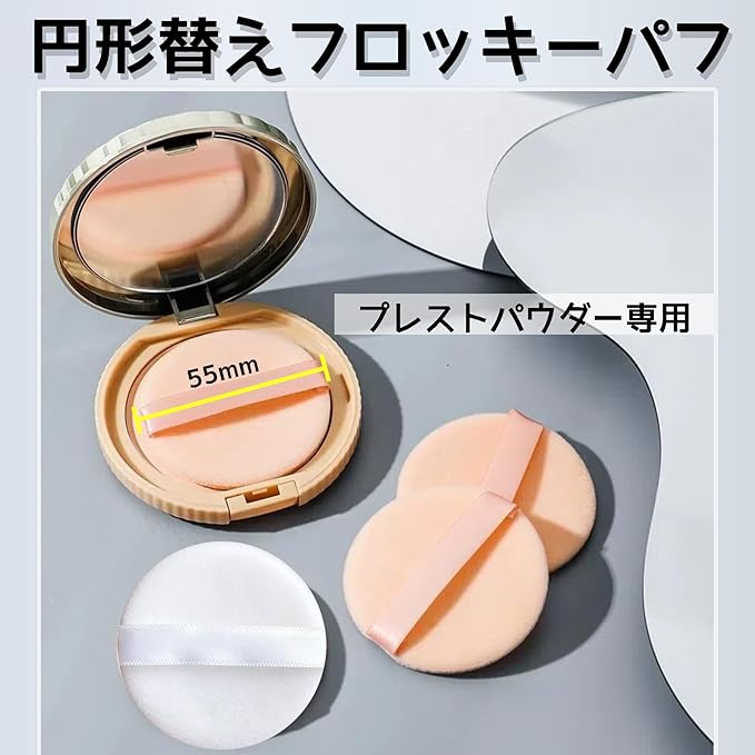 【円形薄型替えパフ】直径が55mmので、ほとんどの人気円形プレストパウダーのパフの置き換えが可能です。厚さわずか7mm の薄型のパフから、パウダーケースはぴったり閉まる!