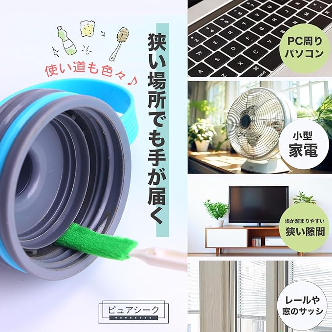 【狭い場所でも手が届く】エアコンの狭い隙間や窓のサッシ、PC周りや車の室内にもOK。また楽器や水筒の蓋、キッチンまわりの油汚れやホコリ。自動車や自転車、など頑丈なので機械類の清掃にも最適!