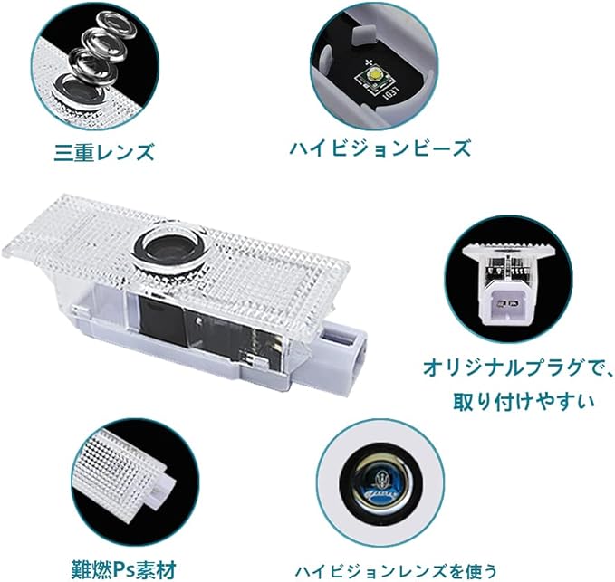 用 途:自動車のドアを開ければ点灯し、逆にドアを閉めれば、消灯する!足元の地面にご愛車のロゴを美しく映し出します。