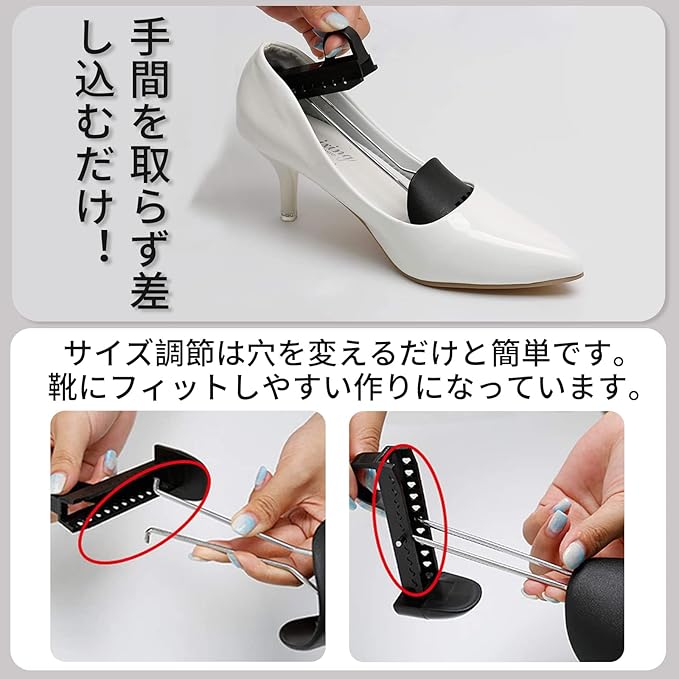 吸湿、抗菌、防虫、防カビ: シューズキーパーは中空のデザインで、通気性あります。湿気がこもらず臭いの源となる雑菌の繁殖を抑え、防臭にも効果あります。型崩れ防止、シワ伸ばし効果を最大発揮でき、長期保管に最も適しています。プラスチック製のシューキーパーですが、抗菌加工も施しています