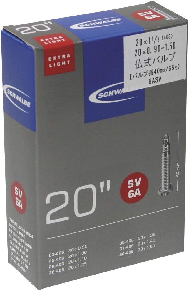 SCHWALBE(シュワルベ) 【正規品】20 0.90/1.50,20 1 1/8(406)用チューブ 仏式 40㎜バルブ 6A-SV