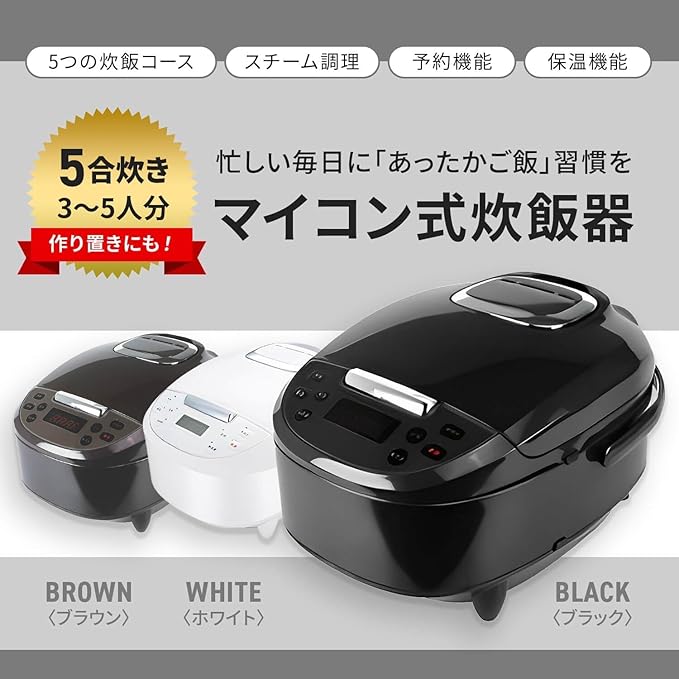 [大阪Deco]マイコン式 多機能炊飯器 5合炊き 炊飯ジャー 厚釜 5種類メニュー(白米/早炊き/無洗米/玄米/おかゆ) 蒸し料理 予約機能 12時間保温 着脱式 丸洗い可能 一人暮らし 家庭用 調理鍋 炊飯器 炊飯ジャー スチーム皿付属 (ブラウン)