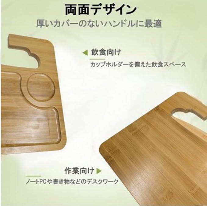 ハンドルにセットするだけで簡単に取り付けられる車用ハンドルテーブルです。 表裏の両面デザインとなっており、食事用と作業用に使い分けられます。 天然竹製素材で耐久性、耐水性があり、長い間お使いいただけます。 軽量薄型サイズで使用後は車内のポケットに収まるため収納場所に困りません。